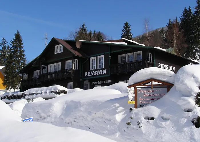 Das Pension Svycarsky Dum Špindlerŭv Mlýn besitzt 9 Zimmer und liegt lediglich 1 km vom Skigebiet Spindlermühle entfernt. Die Pension verfügt auch über einen Privatparkplatz.